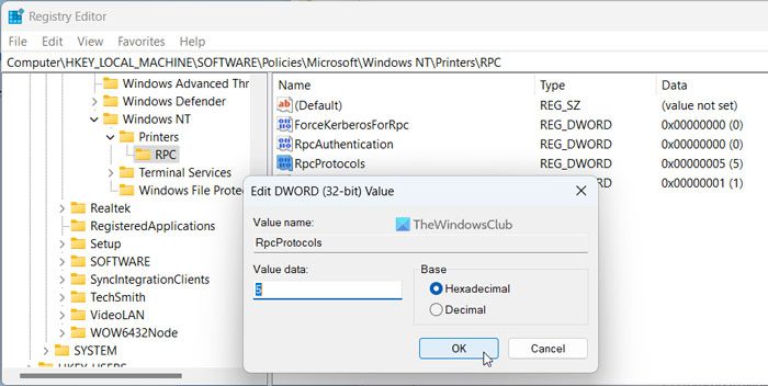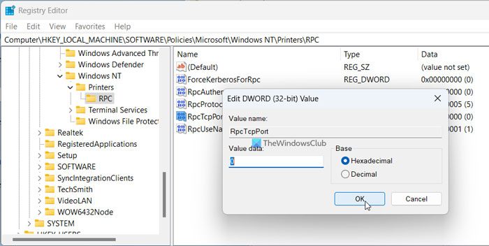 Jak jste řekli dříve, nastavení naslouchání RPC můžete nakonfigurovat také pomocí Editoru registru. Chcete-li to provést, postupujte takto: