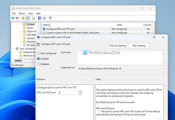 Různé tiskárny používají různé porty pro komunikaci s hostitelským počítačem a klientskými počítači. Ve většině případů je můžete najít pomocí 2501, 9101, 9600 atd. Není však jisté, že vaše tiskárna používá stejné porty. Protože nejnovější aktualizace Windows 11 zvolila RPC, mohou se tyto porty lišit, pokud používáte Windows 10.