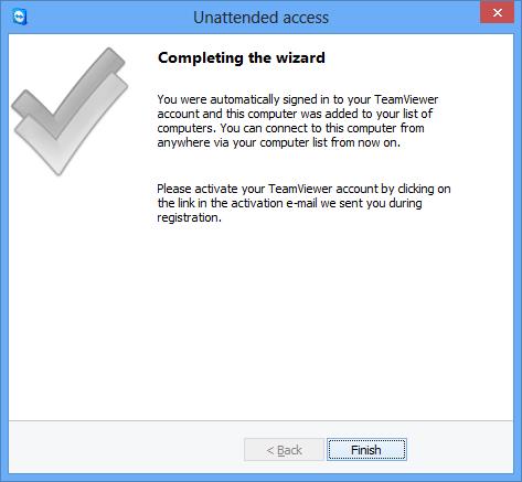 Klikněte na „Další, vy“ a úspěšně jste přidali svůj počítač do seznamu počítačů. Nezapomeňte „aktivovat“ svůj účet TeamViewer přihlášením ke svému e-mailovému ID a kliknutím na odkaz v aktivačním e-mailu.