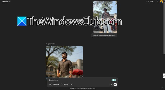 - Jakmile je obrázek nahrán, musíte mu dát výzvu, jako je napřPřeveďte tento obrázek na akční figurkua pak nechte ChatGPT, aby udělal své kouzlo.