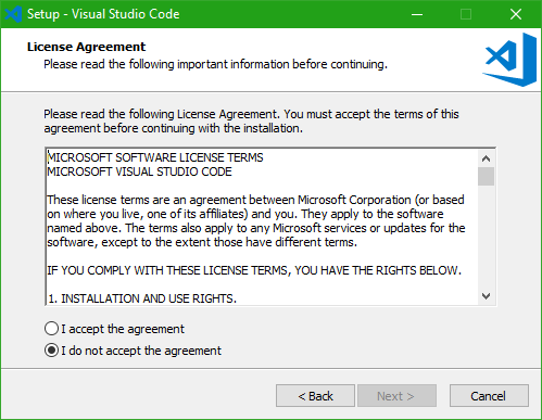 Takže poté, co jste si stáhli soubor s názvemVSCodeSetup-version.exe, poklepáním na soubor jej nainstalujte. V závislosti na tom, jak výkonný je váš hardware, bude instalace trvat asi minutu.