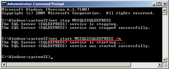 Metode 2: Start SQL Server i enkeltbrugertilstand via kommandoprompt