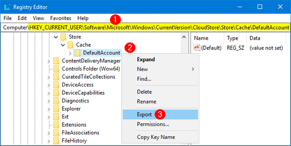 HKEY_CURRENT_USER\Software\Microsoft\Windows\CurrentVersion\CloudStore\Store\Cache\DefaultAccount