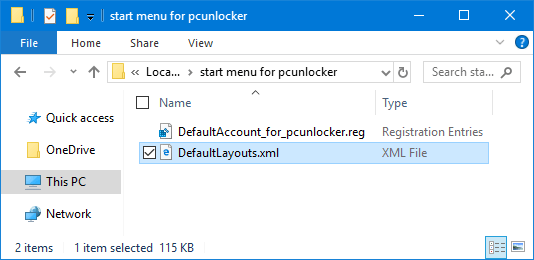 - KopierDefaultLayouts.xmlfilen til den samme mappe, hvor du gemte .reg-filen.