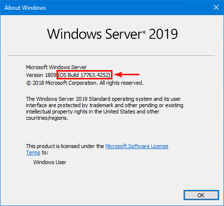 Du kan få versionen og OS build-nummeret fraOm Windowsskærm (winver).