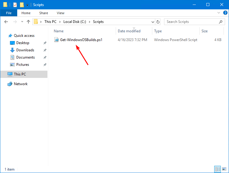 Download Get-WindowsOSBuilds.ps1 PowerShell-scriptet og placer det iC:scriptsfolder. Scriptet eksporterer CSV-filen tilC:tempfolder.