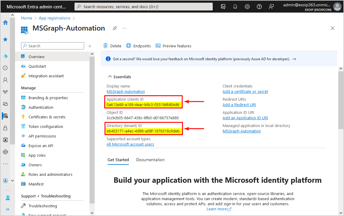 - Giv den beskrivelsenMS Graph Automation Secret