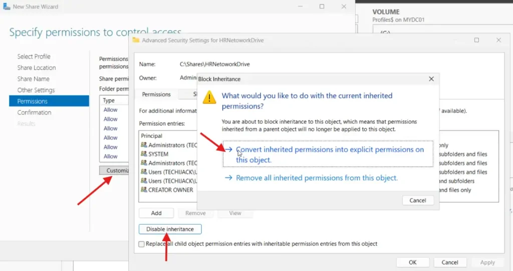 Klik på Tilpas tilladelse og klik påDeaktiver arv