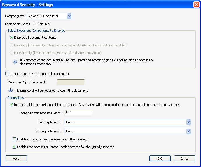 Acrobat Pro giver dig også mulighed for at blokere adgangen til PDF-dokumenter, herunder udskrivning, redigering og kommentering, samt kopiering, udpakning eller ændring af indhold. Ved at indstille en adgangskode til tilladelser vil folk kun kunne læse dette PDF-dokument eller have begrænset adgang til PDF'en.