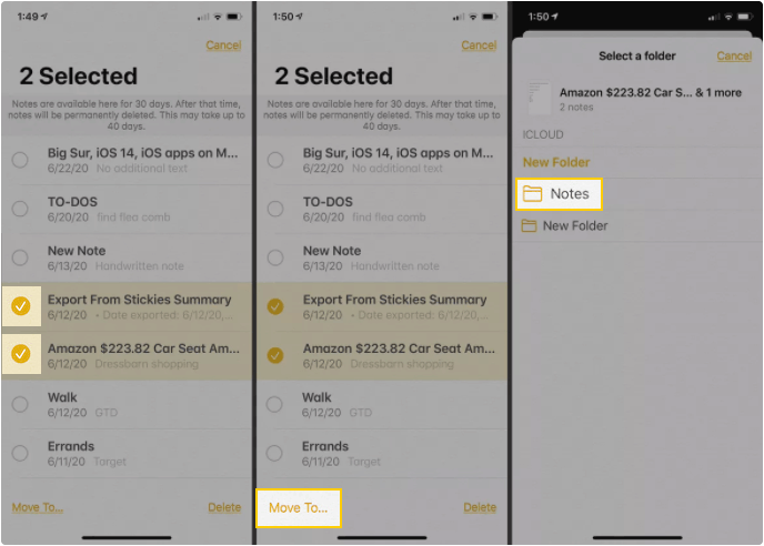 Trin 6: Tryk på i nederste venstre hjørneFlyt til, og vælg derefter den mappe, du vil flytte dine noter til.