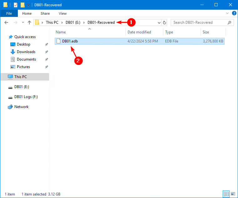 Kopier postkassedatabasenDB01.edb.