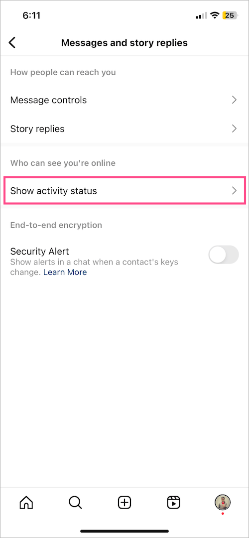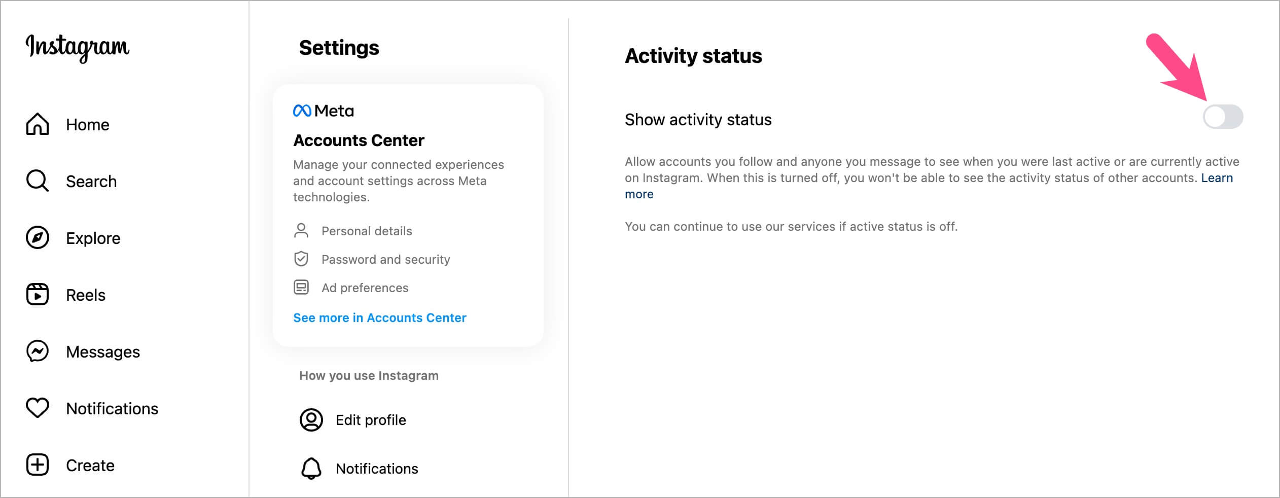 Alternativt, kan du direkte besøgehttps://www.instagram.com/accounts/how_others_can_interact_with_you/og deaktiver "Vis aktivitetsstatus".