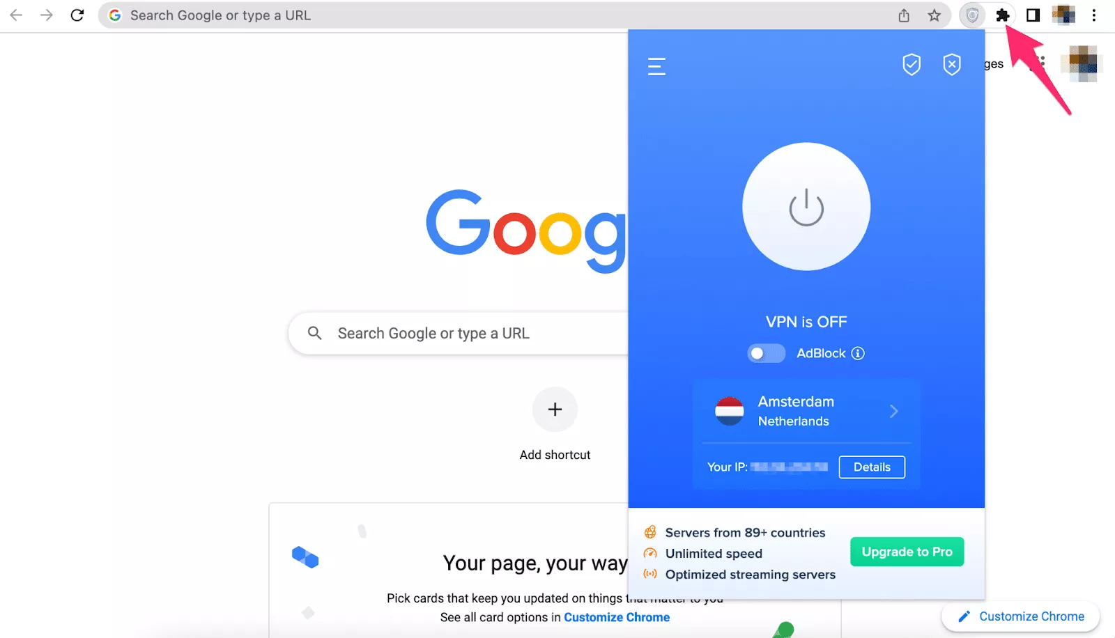Lad os nu finde ud af, hvordan du opsætter en VPN-udvidelse på din browser.