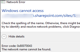 Error code: 0x80070043 The network name cannot be found.