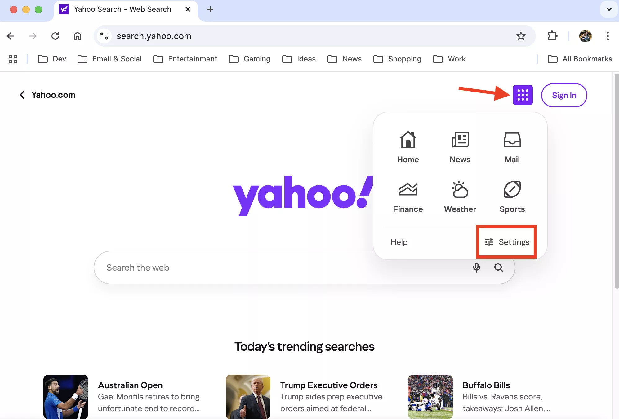 Trin 1. Vælg Indstillinger og derefter Søgeindstillinger