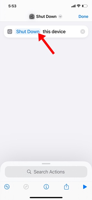 7. Navngiv den nye genvej, hvad du vil, f.eks. Genstart eller Genstart iPhone. Tryk på for at gemme det nye navnFærdig.