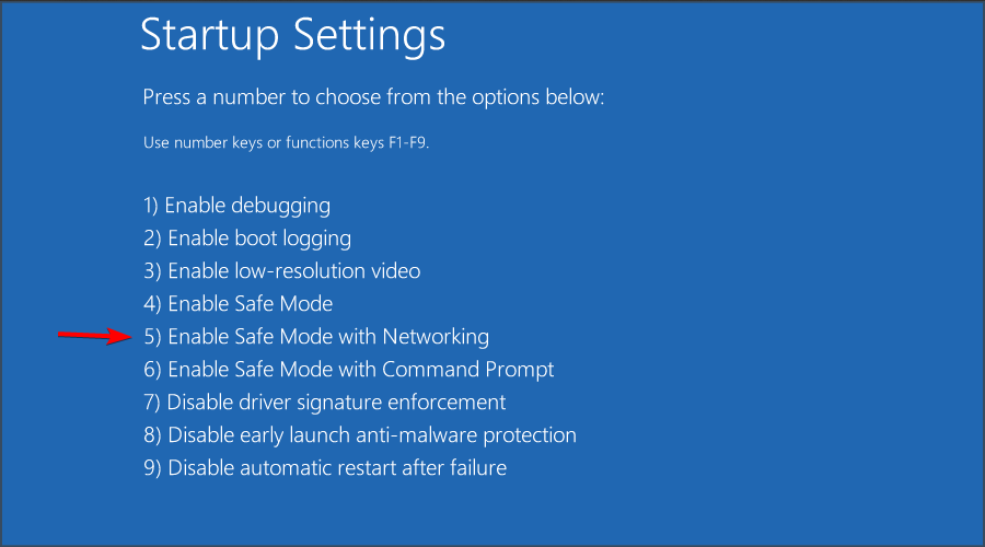 3. Du vil blive præsenteret for forskellige opstartsmuligheder. Vælg nu en af ​​flere versioner af fejlsikret tilstand ved at trykke på den tilsvarende tastaturtast.