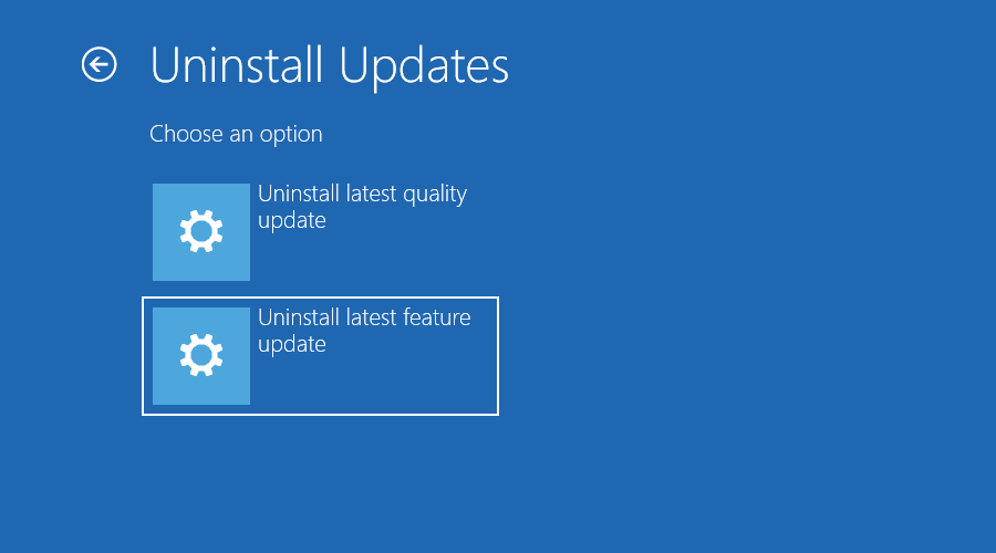 3. Vælg, om du vil fjerne kvalitet eller funktionsopdatering.