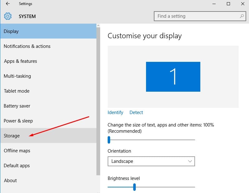2. Klik på under SystemOpbevaring. Klik på under sektionen Opbevaringfrigøre plads,og den åbner scanneren.