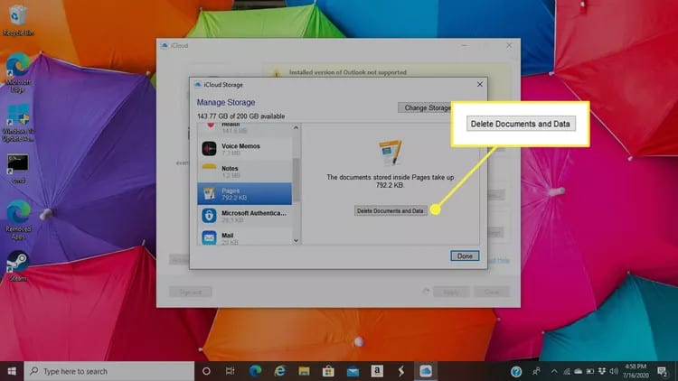 - Når du er færdig, klik påSlet dokumenter og datafor at slette appen fra iCloud.