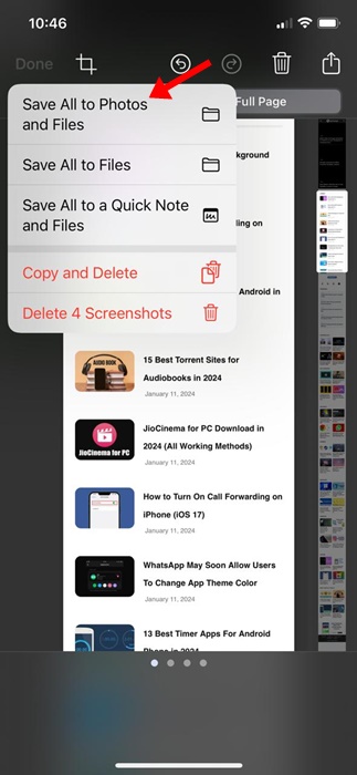 4. Du finder alle dine rullende skærmbilleder. Tryk på rulningsskærmbilledet for at se det.