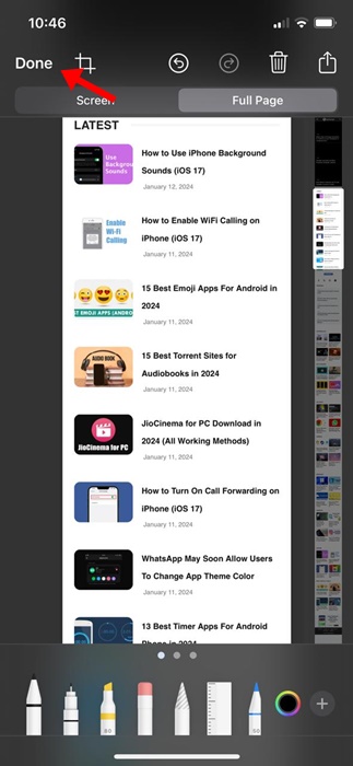 7. Det rullende skærmbillede gemmes som et billede i appen Fotos.