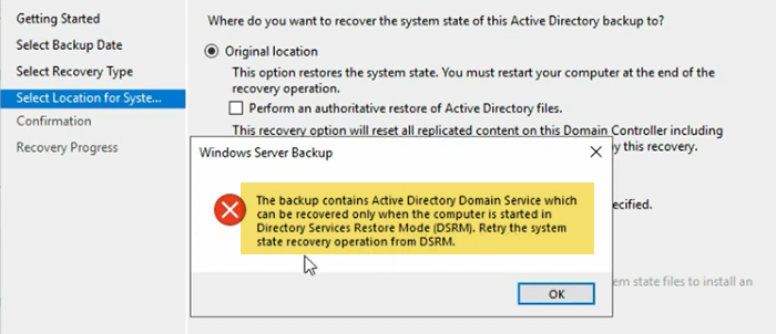 For at tage en sikkerhedskopi af Active Directory skal du sikkerhedskopiere systemtilstanden. På samme måde, når du gendanner det, skal du gendanne systemtilstand, men det er kun muligt i Active Directory-gendannelsestilstand. Hvis du vil sikkerhedskopiere og gendanne Active Directory, anbefaler vi, at du tjekker den førnævnte guide.