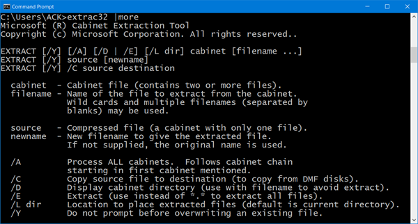 Der er tre indbyggede Windows-kommandolinjeværktøjer til håndtering af CAB-filer: