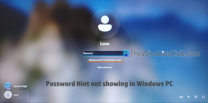 Et adgangskodetip, som brugeren angiver i Windows 11/10, er synligt, når der indtastes en forkert adgangskode på Windows-logonskærmen. Dette hjælper brugerens hukommelse til at huske den korrekte adgangskode. Nogle brugere har dog klaget over, at hint om adgangskode slet ikke er synligt på deres Windows-loginskærm på trods af flere mislykkede loginforsøg. Hvis du også står over for dette problem ogadgangskodetip vises ikkei dinWindows 11/10system, er dette indlæg nyttigt.