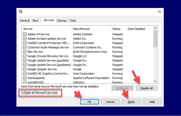 En tredjepartstjeneste kan forårsage dette problem. Tjek dette ved. Når du er i Clean Boot-tilstand, skal du åbne Enhedshåndtering og scanne for hardwareændringer. Hvis problemet ikke fortsætter, skal du identificere den problematiske tredjepartstjeneste.