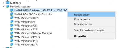 Udvid listen overNetværksadaptere. Højreklik på netværksadapteren og vælgOpdater driver.