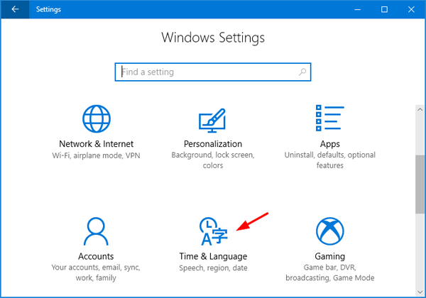 - Drücken Sie die Tasten Windows + I, um die App „Einstellungen“ zu öffnen, und klicken Sie dann aufZeit & Sprache.