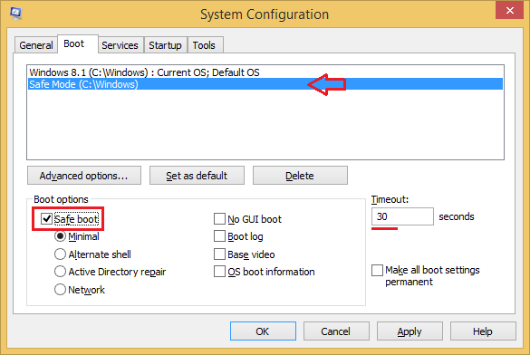 - Deaktivieren Sie das KontrollkästchenAbgesicherter ModusOption. Klicken Sie auf Übernehmen und dann auf OK. Starten Sie erneut und hoffentlich funktioniert das Startmenü jetzt.