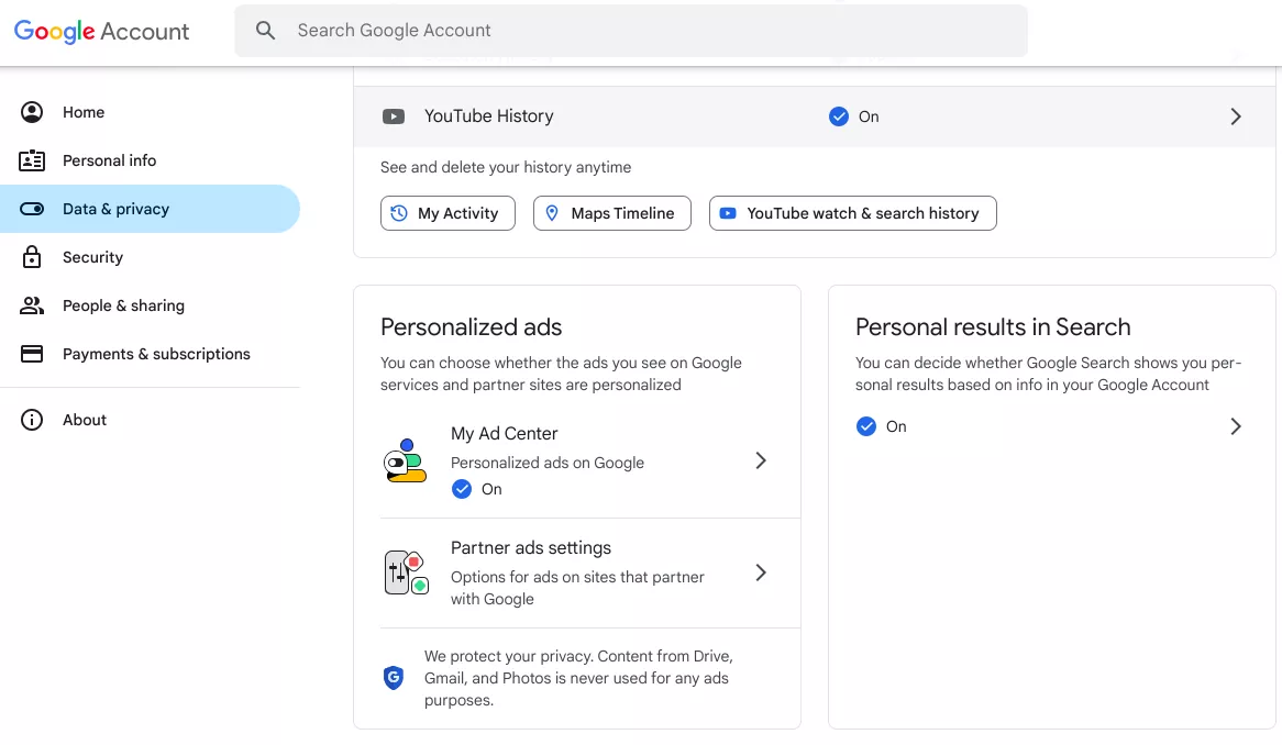 - Gehen Sie zu IhremGoogle-Kontound überprüfen Sie Ihre in verschiedenen Google-Diensten gespeicherten Informationen.