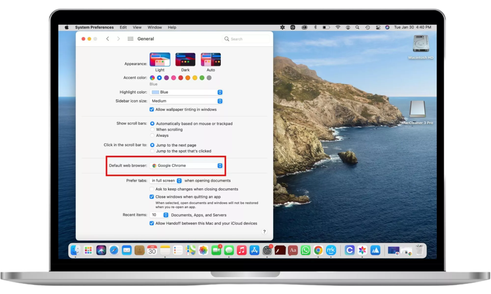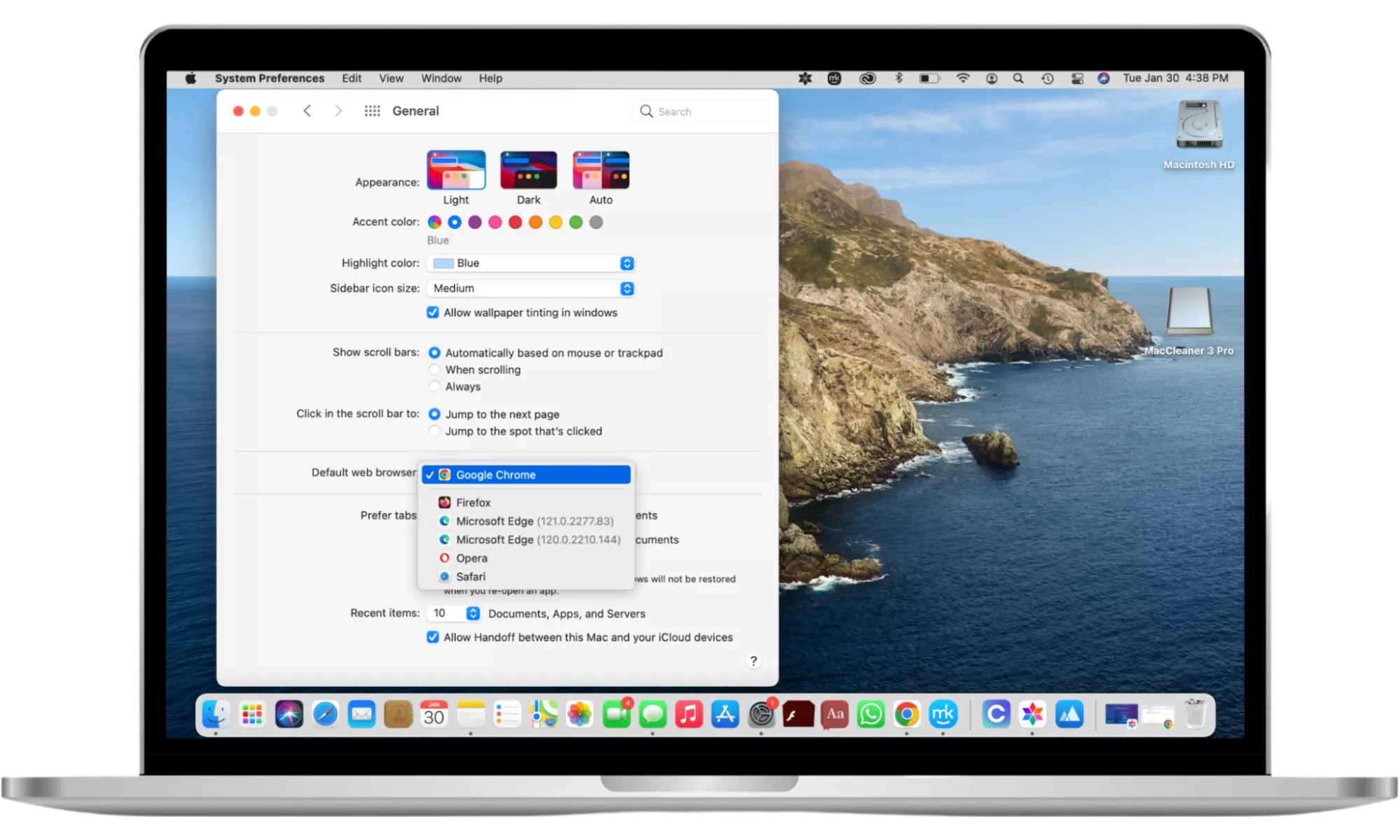 Wenn Sie auf den Browser oder die im angezeigten Pfeile klickenStandard-WebbrowserAbschnitt zeigt die Dropdown-Liste nur die Browser an, die Sie derzeit auf Ihrem MacBook-Gerät installiert haben. Die Liste enthält auch die Browser, die Sie nicht verwenden (was ein Zeichen dafür ist, dass es an der Zeit ist, sie zu löschen).