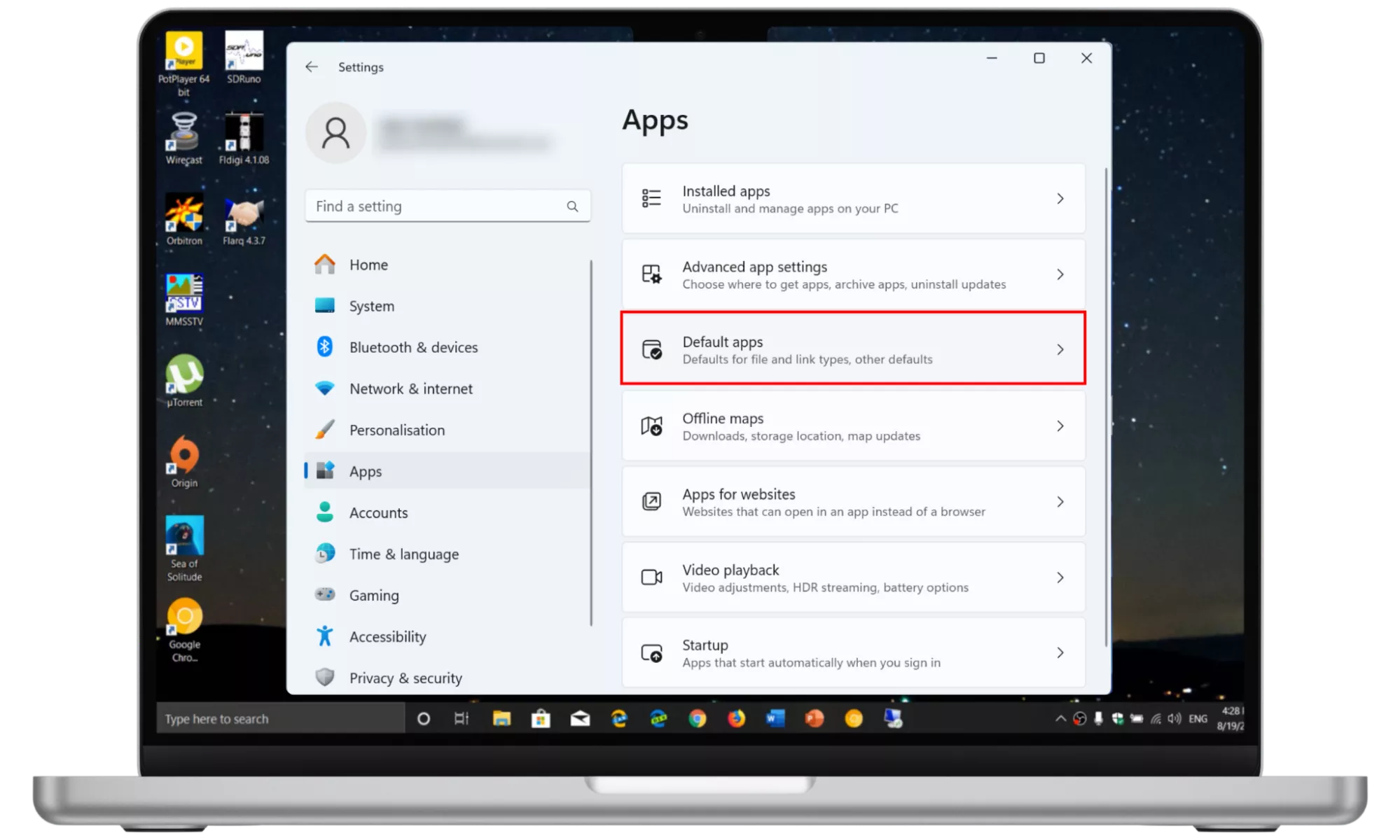 - Wählen Sie dieStandard-AppsOption aus dem linken Menü.