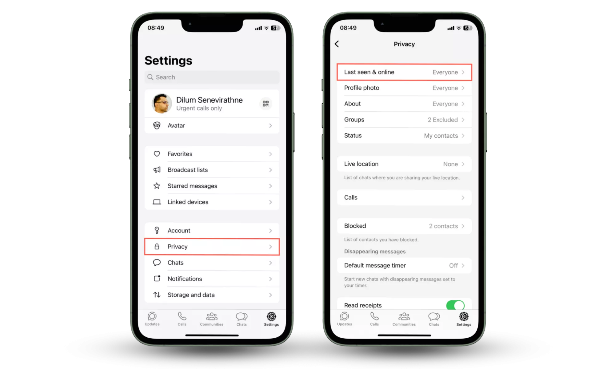 Schritte 1–3: Gehen Sie zu WhatsApp > Einstellungen > Datenschutz und stellen Sie „Zuletzt gesehen und online“ auf „Alle“ oder „Meine Kontakte“ ein.Abschluss