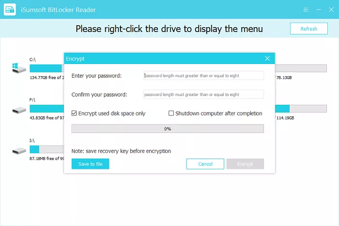 Lösung 2: Aktivieren Sie die vollständige Festplattenverschlüsselung mit iSoft BitLocker Reader