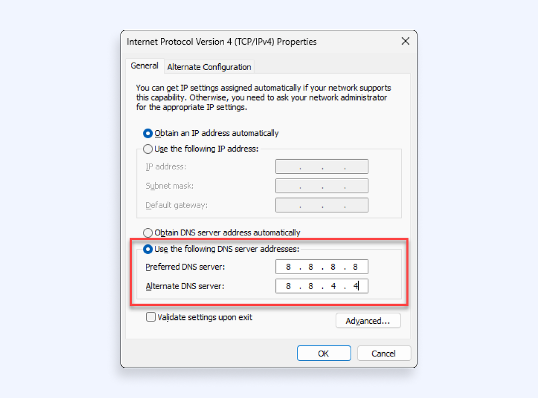 5. Geben Sie sowohl die erste als auch die zweite DNS-Adresse ein, die Sie vom Smart DNS Proxy erhalten haben.