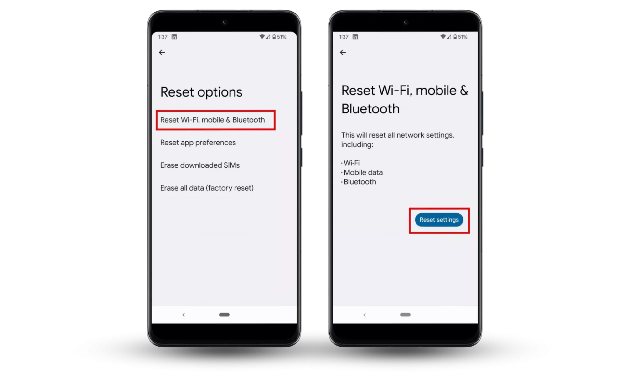 - WählenSetzen Sie WLAN, Mobilgeräte und Bluetooth zurück.