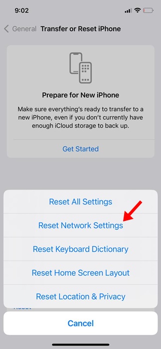 5. Wählen SieNetzwerkeinstellungen zurücksetzen.