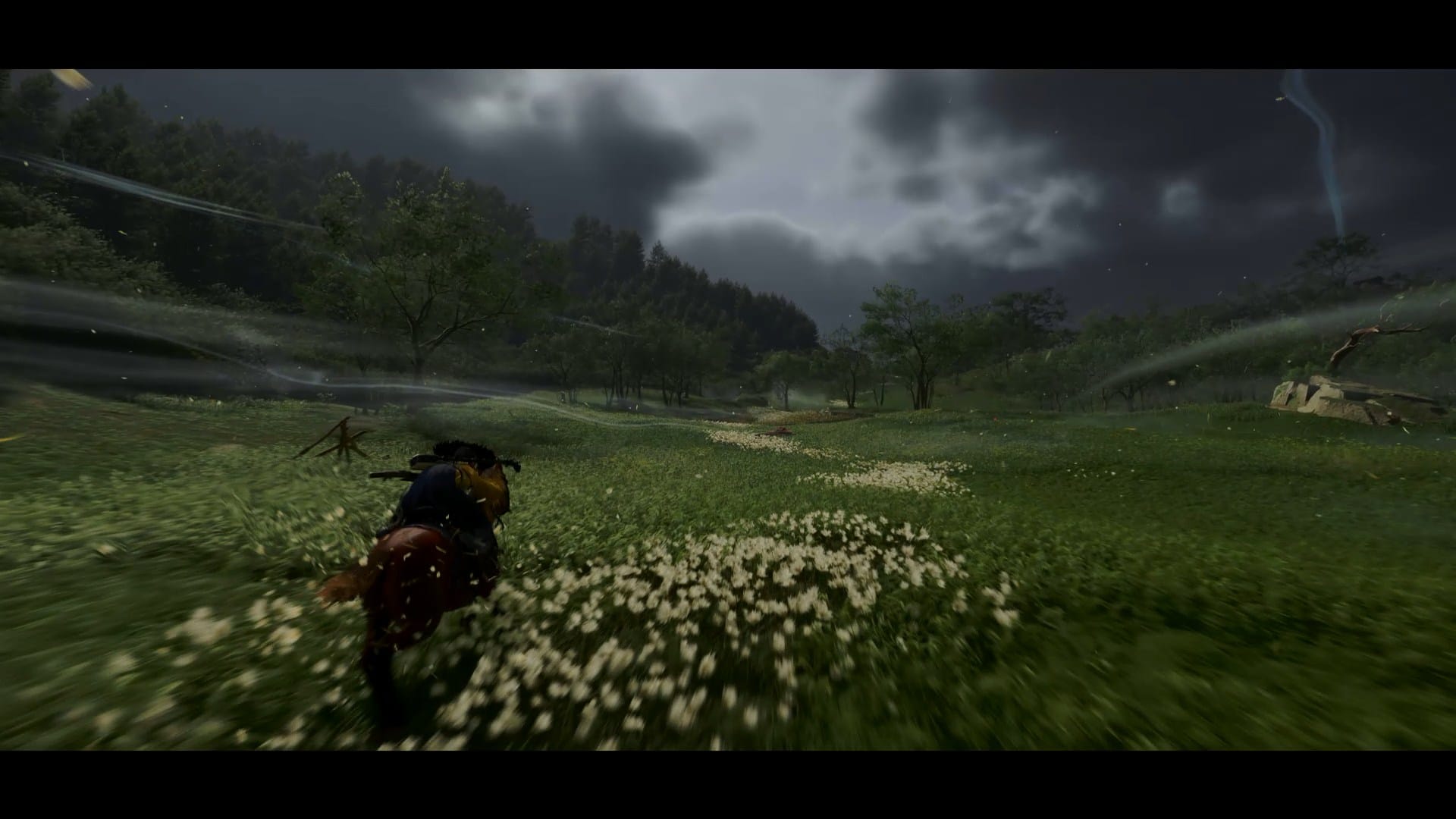 Steigen Sie auf Ihr Pferd und folgen Sie dem Wolf, während er der Duftspur folgt, die Sie zu Saitos feindlichem Lager führt. Bleiben Sie in Ihrer Nähe; Der Wolf bewegt sich schnell durch das Grasland.