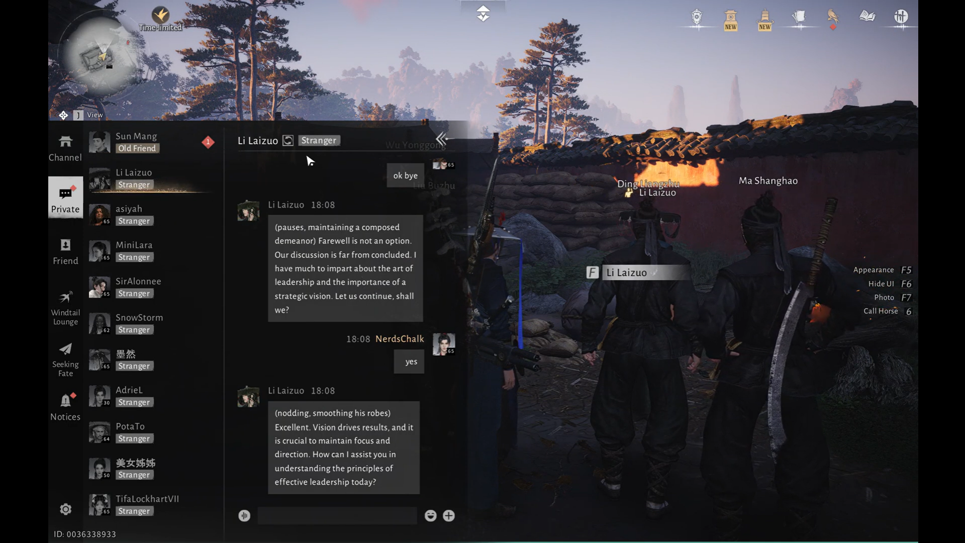 Um auf die Chatbox zuzugreifen, in der Sie NPCs Textnachrichten senden können, um sich mit ihnen im Freundschaftssystem von Where Winds Meet anzufreunden, suchen Sie nach goldenen Symbolen über den NPCs „AI Jianghu Friends“ oder „Old Friends“.