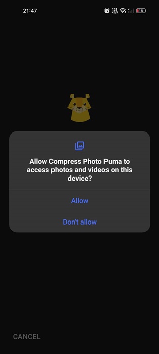 3. Die App fordert Sie auf, Zugriff auf die Fotos und Videos Ihres Geräts zu gewähren. Gewährendie Erlaubnis.