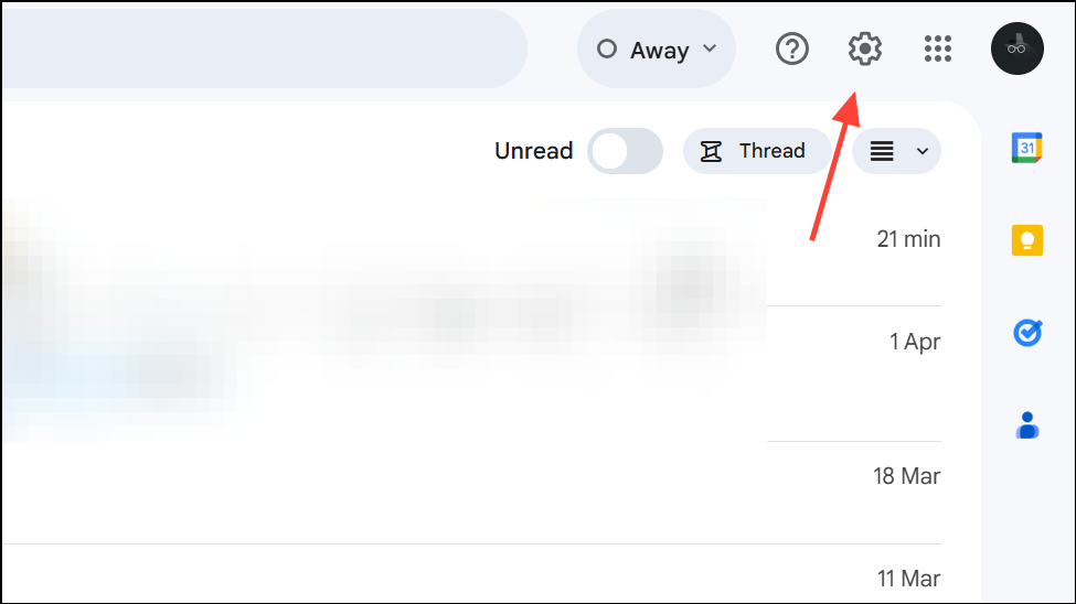 Schritt 2:Suchen Sie das Einstellungssymbol, das in der oberen rechten Ecke der Google -Chat -Oberfläche als Zahnradsymbol angezeigt wird. Klicken Sie auf dieses Symbol, um das Menü Einstellungen zu öffnen.