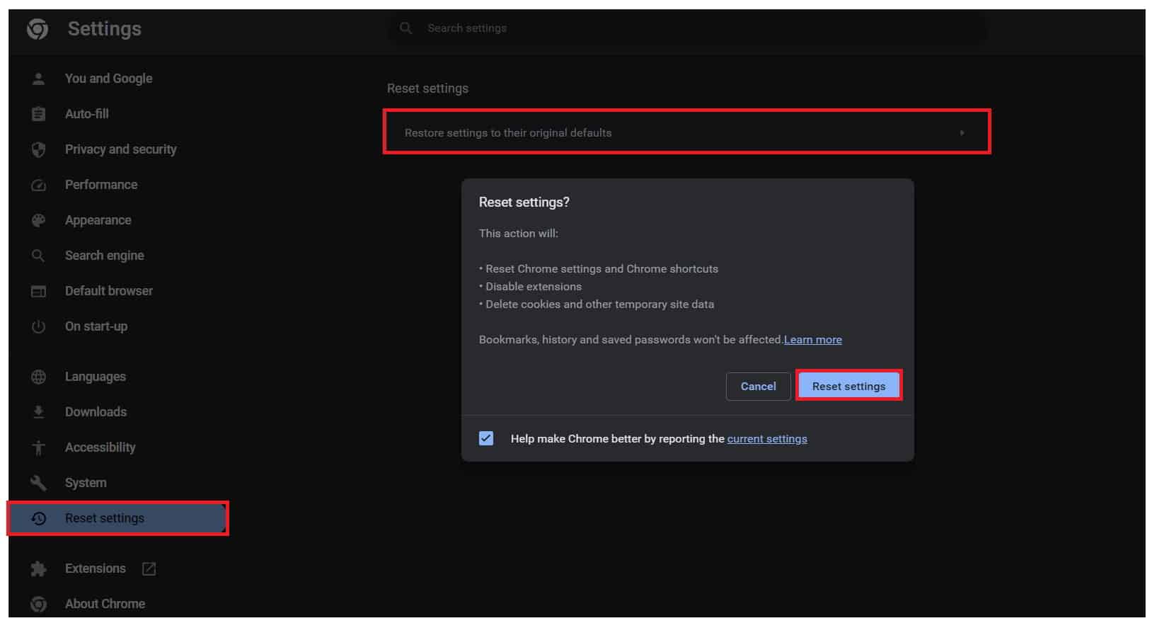 Stellen Sie sich vor, Ihr Chrome-Browser ist ein Raum, der aufgeräumt werden muss. Durch das Zurücksetzen wird das Durcheinander beseitigt, das dazu führen könnte, dass das Video nicht abgespielt wird. Es ist, als würden Sie Ihrem Zimmer eine schnelle Umgestaltung verpassen.