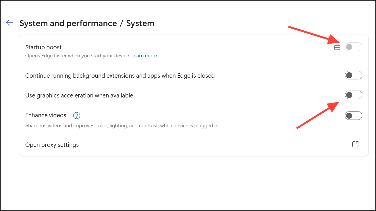 --enable-features=msEdgeResourceControlsRamLimiterStarten Sie Edge neu, nachdem Sie diese Änderung übernommen haben. Möglicherweise müssen Sie auch deaktivierenStartup-BoostInedge://settings/systemwenn die Funktion nicht angezeigt wird.