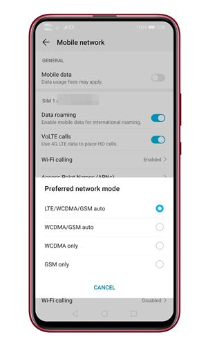 Sie müssen den richtigen Netzwerkmodus aktivieren, um zu beheben, dass mobile Daten unter Android nicht funktionieren. Gehen Sie zunächst zu Einstellungen > Mobile Daten > Netzwerkmodus und wechseln Sie in den entsprechenden Netzwerkmodus.
