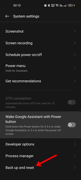 2. Tippen Sie nun aufSichern und zurücksetzenOption.