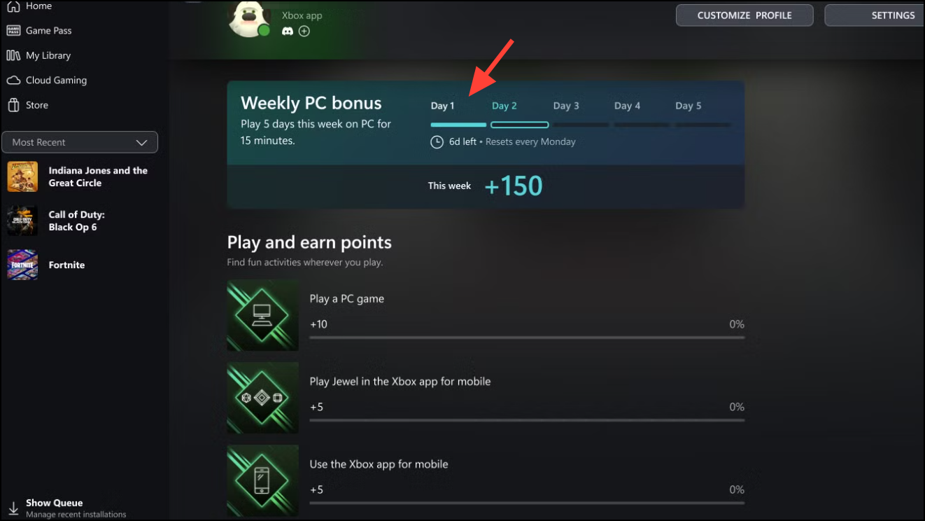 Gleichzeitig können Sie mit Spielpass auf mehreren Plattformen Ihre Punkte multiplizieren, da tägliche und wöchentliche Quests für jeden Gerätetyp separat verfolgt werden. Für PC -Benutzer kann das Spielen von Spielpass -Titeln für fünf Tage in einer Woche einen dedizierten Bonus freischalten, während mobile Benutzer einfach Punkte verdienen können, indem sie die App öffnen und mit vorgestellten Inhalten interagieren.